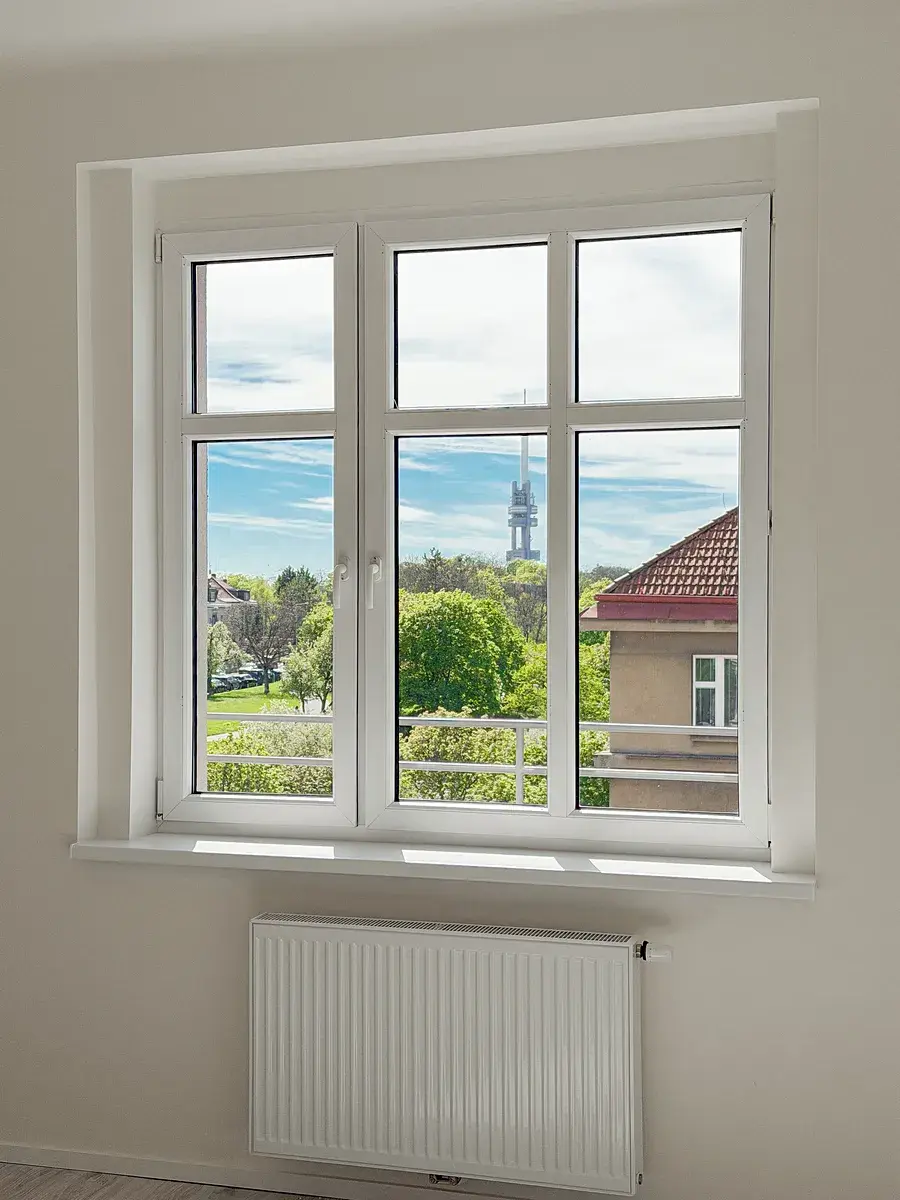 Z bytu je navíc příjemný výhled směrem na Žižkovskou věž.