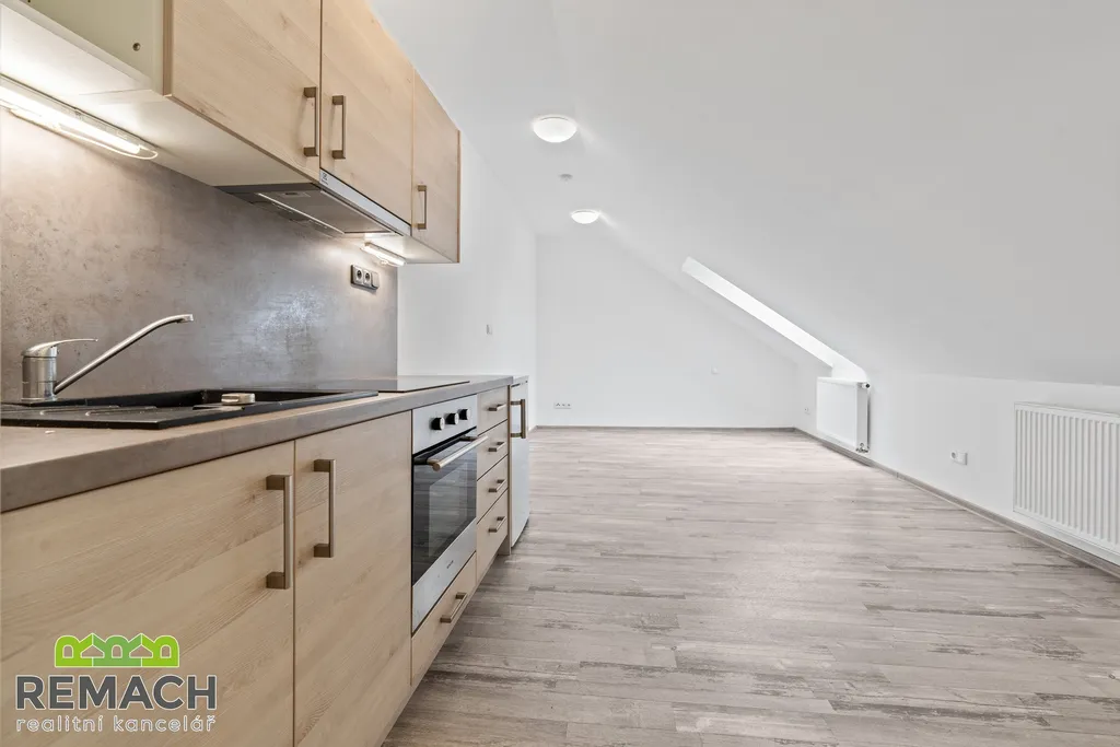 Zrekonstruovaný podkrovní byt o dispozici 1+kk, nacházející se přímo v centru Uherského Hradiště. Byt je vybaven kuchyňskou linkou s vestavěnými spotřebiči, klimatizací, v koupelně přípojky na pračku, sprchový kout a elektrický bojler. Předsíň s úložným prostorem. K nastěhování ihned. K ceně nájmu se připočítávají energie včetně internetu ve výši 2.000,- Kč. Byt je volný od 1.4.2026.