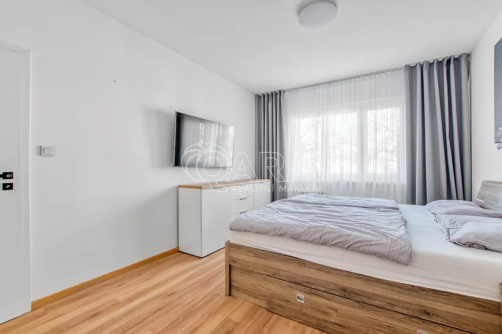 V roce 2024 prošel byt kompletní a nákladnou rekonstrukcí. Při realizaci byl kladen důraz na použití kvalitních materiálů a barevné sladění do nadčasových odstínů. V celém bytě je položena luxusní vinylová podlaha, zatímco v koupelně a na toaletě najdete vkusnou dlažbu. Koupelna je vybavena vanou a umyvadlem se zrcadlem, přičemž toaleta zůstala pro větší komfort oddělena.