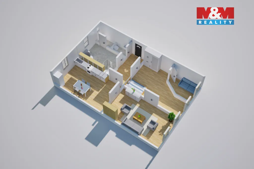 Dispozice 3+kk nabízí komfortní bydlení s dostatkem místa pro rodinu i jednotlivce, kteří ocení prostorné místnosti a praktické uspořádání. Díky umístění v 1. nadzemním podlaží je byt pohodlně dostupný a vhodný pro všechny věkové kategorie.