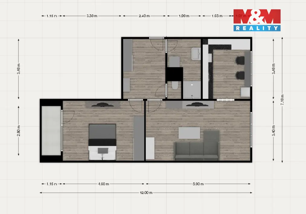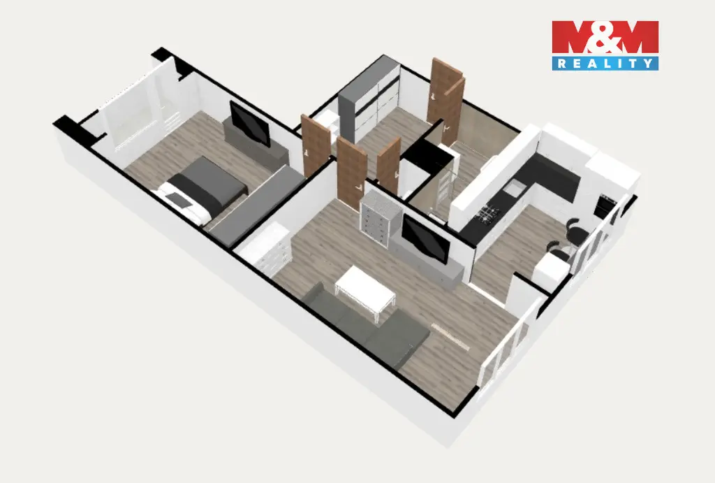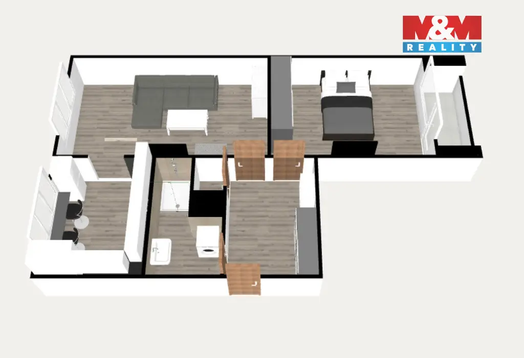 Byt prošel zdařilou rekonstrukcí včetně úpravy dispozice, díky které vznikl vzdušný prostor s propojeným obývacím pokojem a moderní kuchyní. Koupelna i WC jsou samostatné a prakticky řešené.