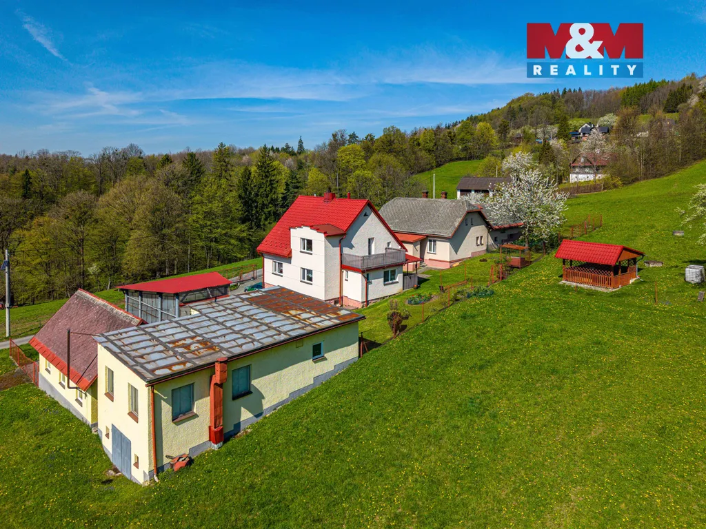 Na okraji obce Vendryně, na pozemku o velikosti 15 989 m², se nachází dva rodinné domy a další stavby, které otevírají široké možnosti využití. První dům je zděný, dispozičně řešený jako 3+1, s jedním podlažím, obytným podkrovím a suterénem. Má užitnou plochu přibližně 80 m² a prošel částečnými rekonstrukcemi, včetně střechy, oken a rozvodů. Díky tomu je ihned obyvatelný a v dobrém stavu.