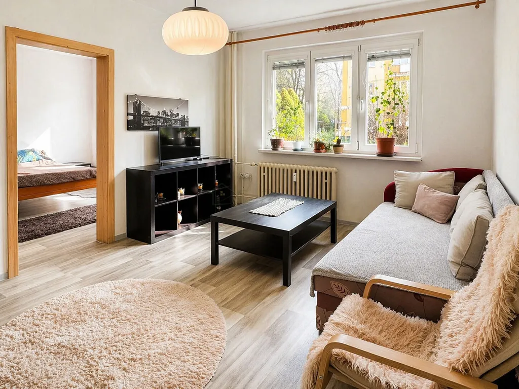 V současné době je byt pronajatý spolehlivému a pravidelně platícímu nájemníkovi. V případě zájmu o vlastní bydlení je však možné byt po dohodě uvolnit.