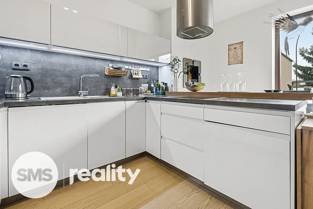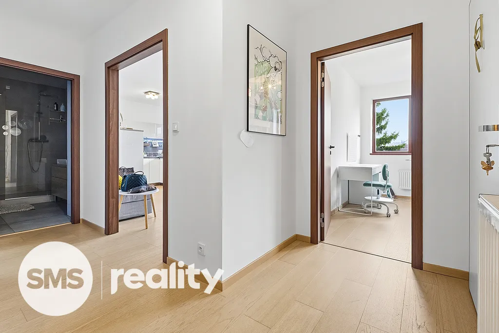 Byt je vybaven kuchyňskou linkou s indukční varnou deskou, má plovoucí podlahy, samostatnou toaletu a sprchový kout.