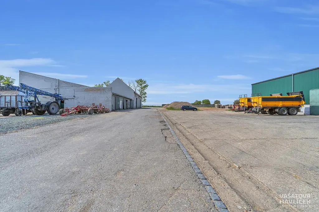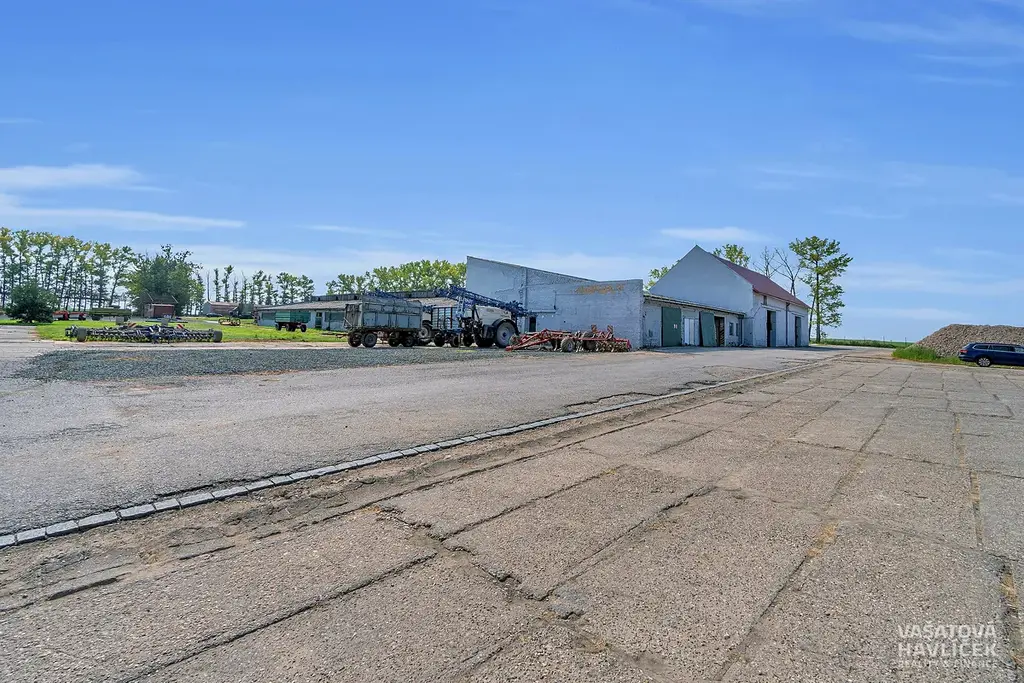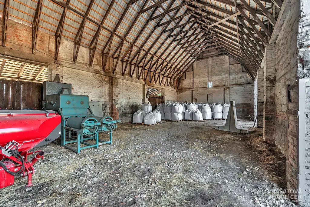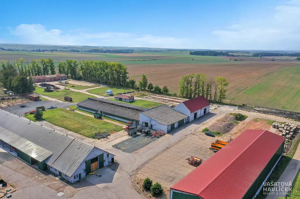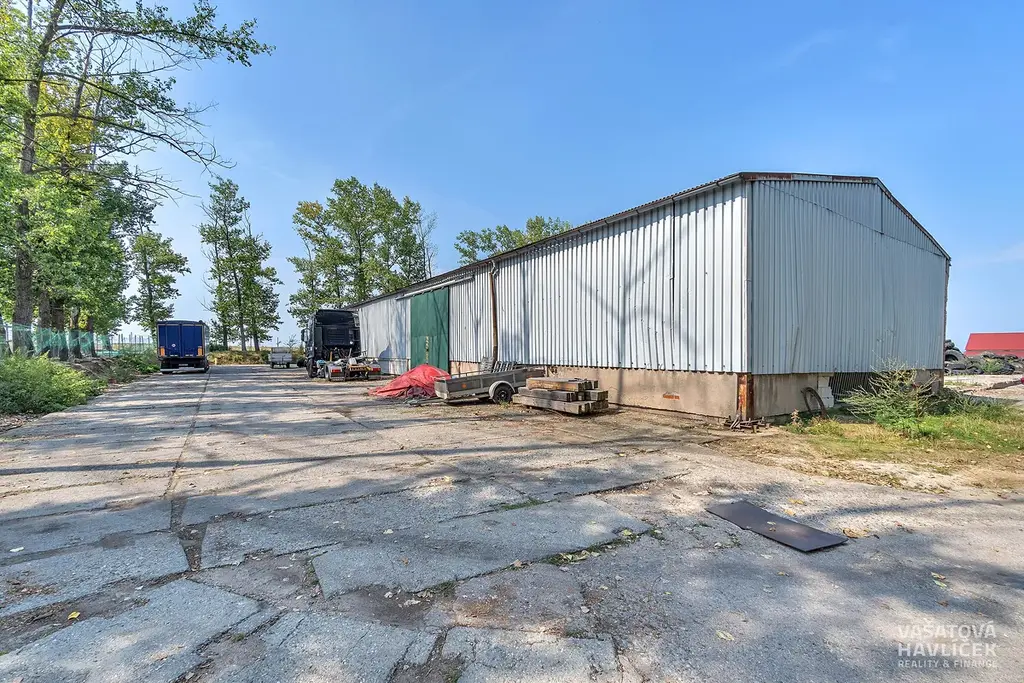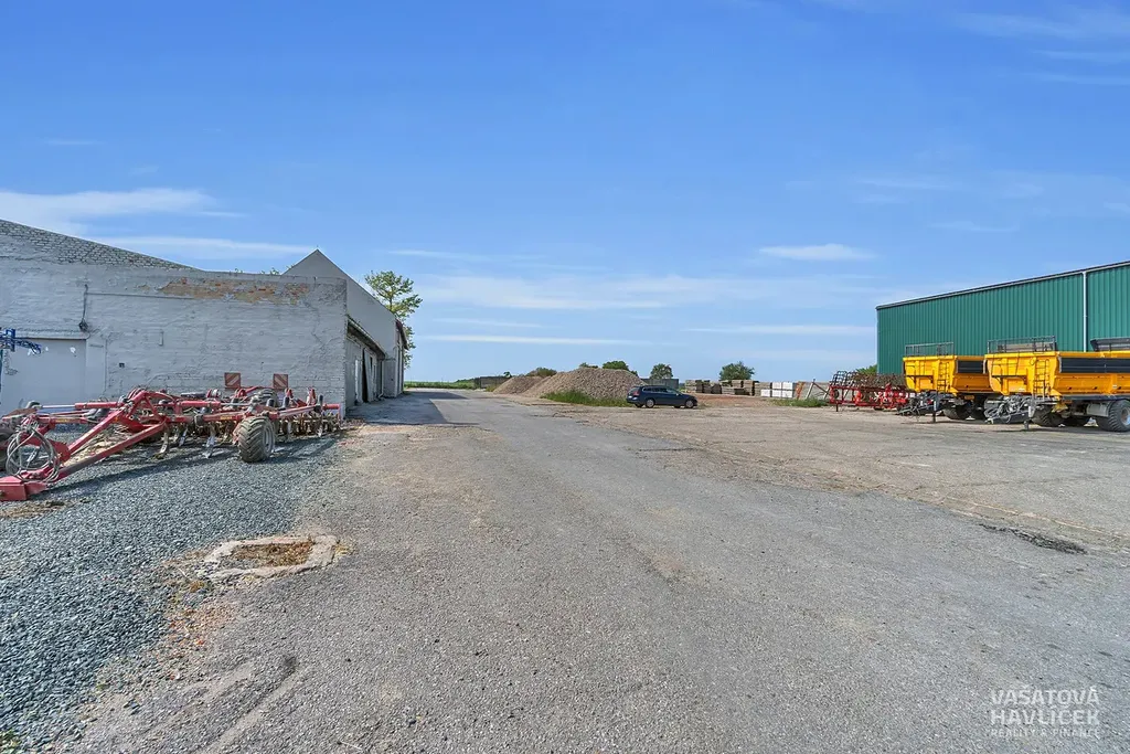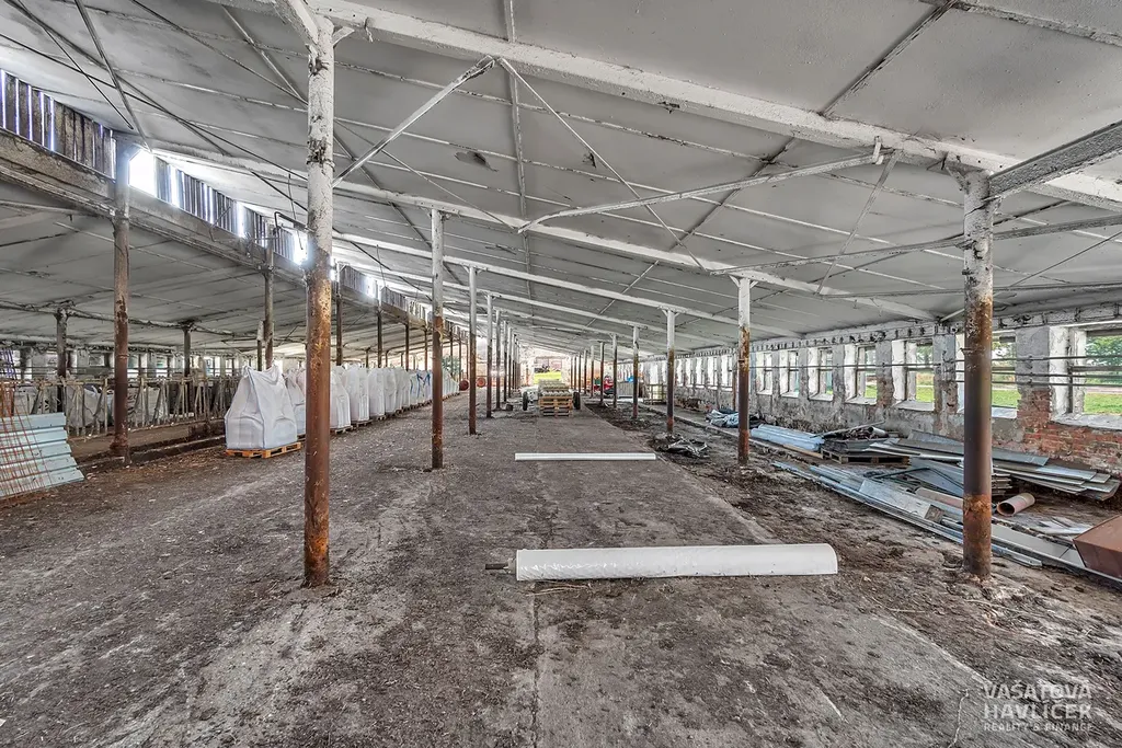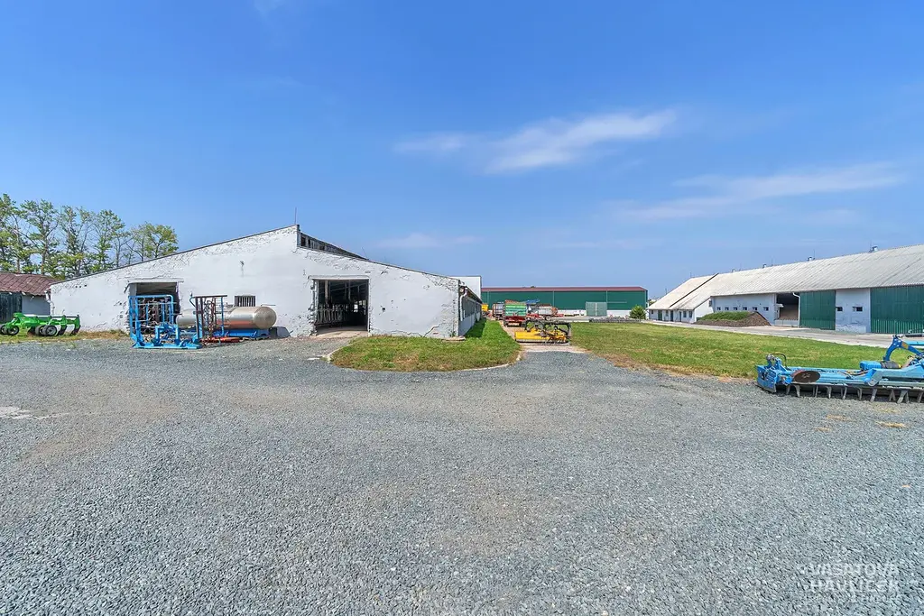 Jedná se o rovinatý pozemek a tři budovy. Jedna je bývalý kravín, který byl ještě v roce 2022 funkční, druhá budova je hned vedle, není uzavřená, má vysoké stropy (cca 10 m), je zde nová plechová střecha. Třetí hala je využívána jako skladový prostor. Všechny tři budovy jsou nevytápěné. V areálu je částečně zpevněná plocha položenými panely a na některých místech zeleň. Na pozemku se nachází vrtaná studna (cca 50 m hluboká), která slouží pro celý areál. Odpadní voda je vyvedena do septiku.