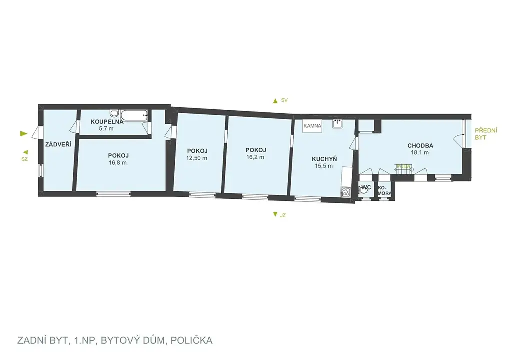 Lokalita: Penny market – 6 minut chůzí, 2 min. autem; zastávka Polička „Družstevní mlýn“ – před domem; MŠ a ZŠ – 15 min. chůzí, do 3 min. autem; centrum města – 14 min. chůzí; nemocnice – 3 min. autem; sportovní vyžití – 11 min. chůzí, 2 min. autem.