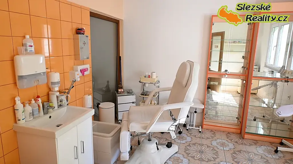 V přízemí se nachází bytová jednotka o velikosti 3+1, dvě toalety a zkolaudovaný prostor pro podnikání, aktuálně využívaný pro služby (manikúra, pedikúra, solárium), který lze využít i pro jiné účely, například ordinaci či kancelář.
