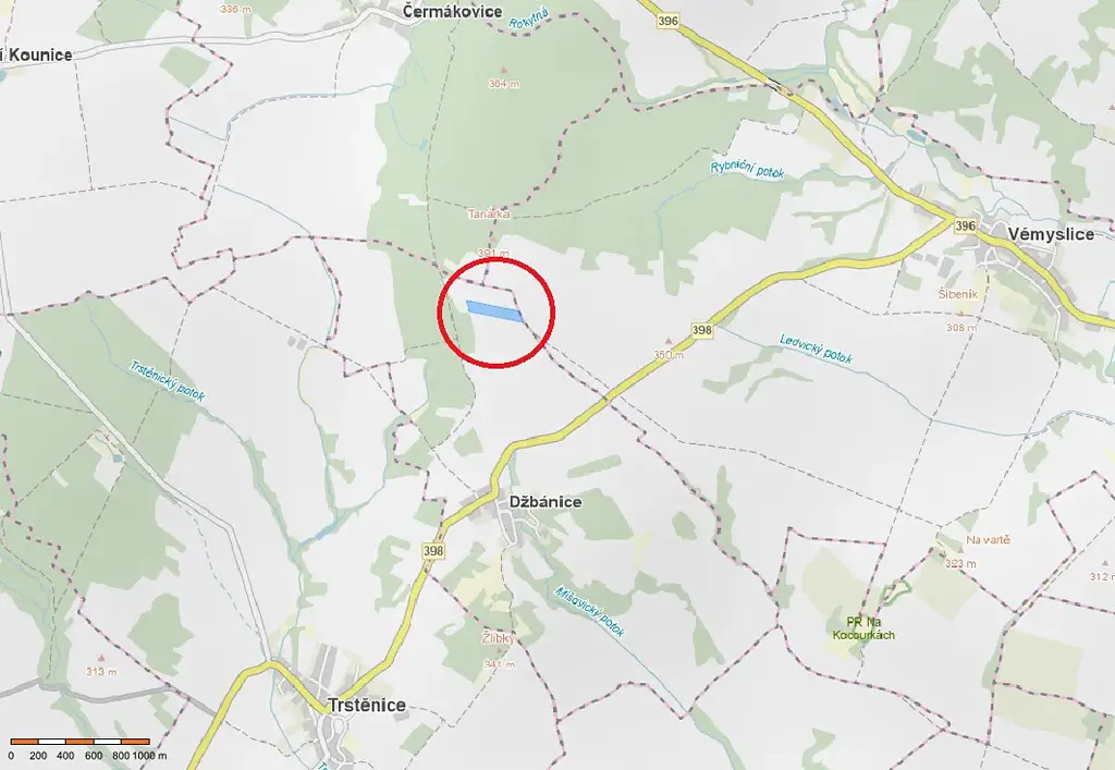 Nabízíme k prodeji zemědělský pozemek o celkové výměře 29 834 m², nacházející se v katastrálním území Džbánice, zapsaný na LV č. 300.