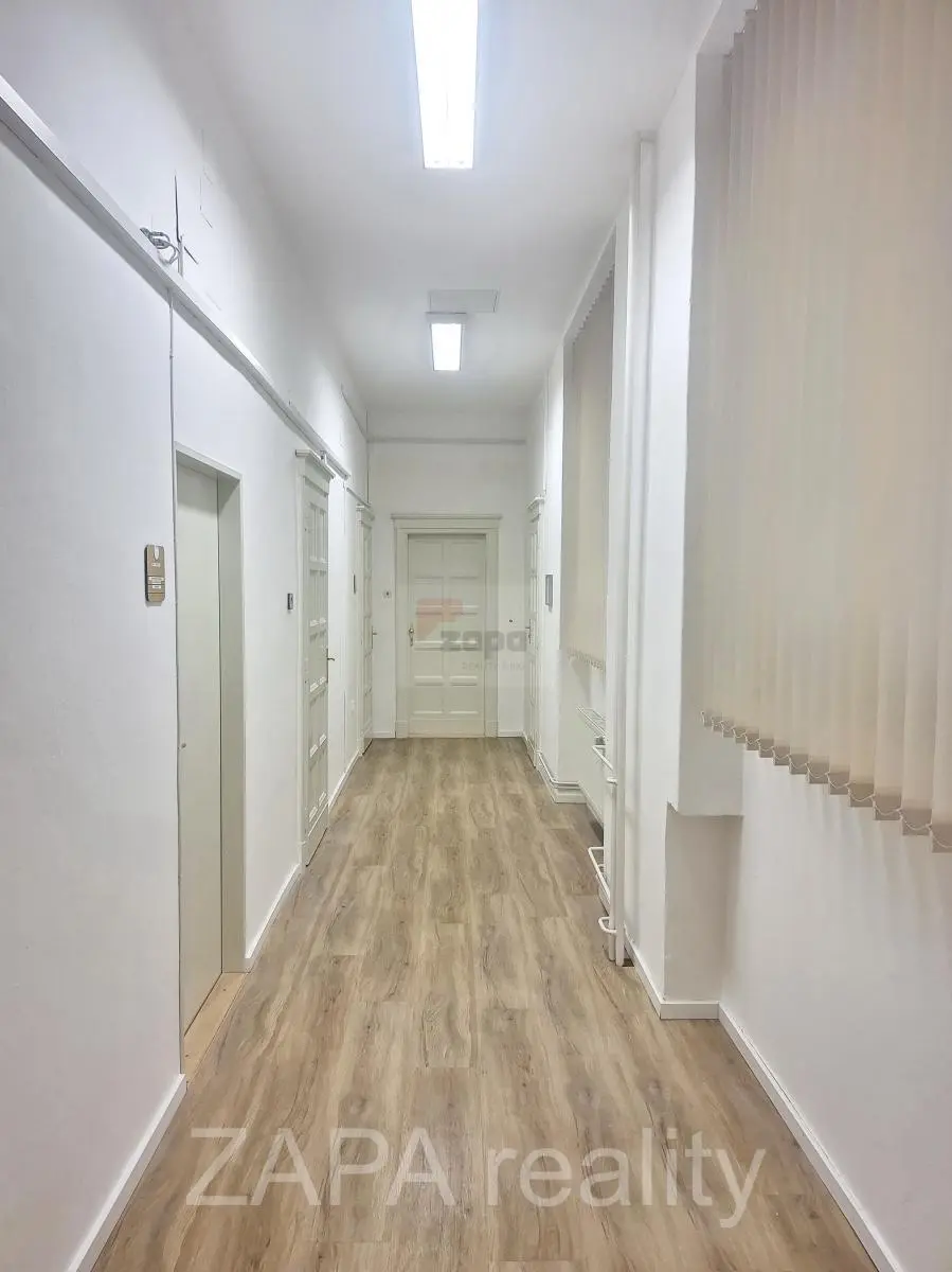 Celé prostory jsou pod jedním uzavřením, první kancelář je s výhledem do vnitrobloku, druhá zadní kancelář je bez denního osvětlení, okno je s výhledem/pohledem na sousední OC Máj. Součástí prostor je vlastní kuchyňský kout v předsínce, koupelna se sprchovým koutem, oddělené WC a menší sklad.