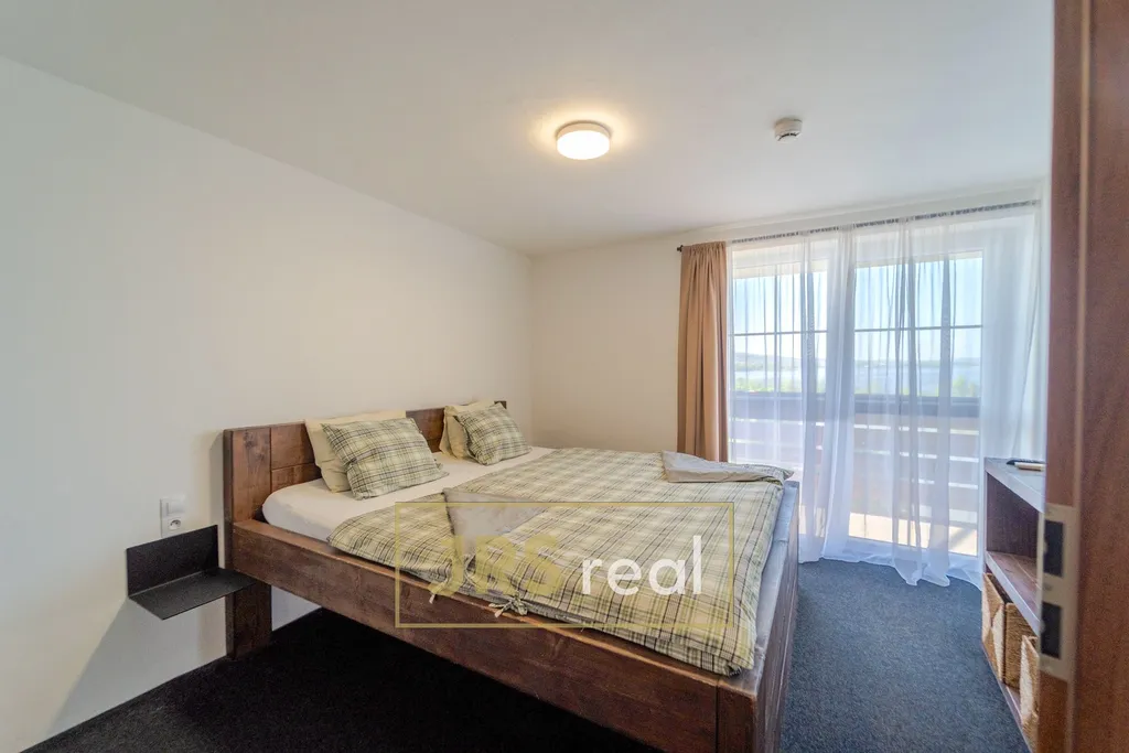 Moderní apartmánový dům byl navržen s důrazem na soukromí, klid a pohodlí. Celá nemovitost působí velmi harmonicky a nabízí ideální zázemí jak pro vlastní odpočinek, tak i pro hosty. Nemovitost je nyní využívána ke krátkodobým pronájmům či rodinným návštěvám majitele. Dům je rozdělen na dva samostatné apartmány, každý s vlastním sociálním zázemím a vlastní terasou, ze které se otevírá krásný výhled na Pálavu, Strachotínský rybník a Novomlýnské nádrže, které jsou v docházkové vzdálenosti. Kromě toho je k dispozici i jedna společná terasa, která přímo vybízí ke sdílení zážitků s rodinou či přáteli.