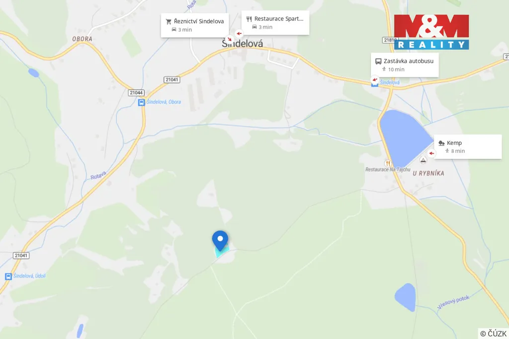 Nabízíme k prodeji stavební pozemek o výměře 798 m² v obci Šindelová. Pozemek je dle územního plánu určen k výstavbě rodinného domu, což z něj dělá ideální příležitost pro realizaci vlastního bydlení nebo investici do budoucna. Inženýrské sítě se nenacházejí přímo na pozemku, jsou však v dosahu a jejich napojení je možné (doporučujeme ověřit u jednotlivých správců sítí). Přístup je zajištěn z obecní komunikace.