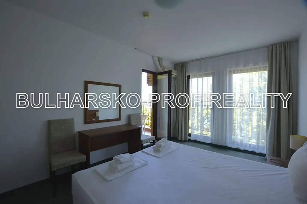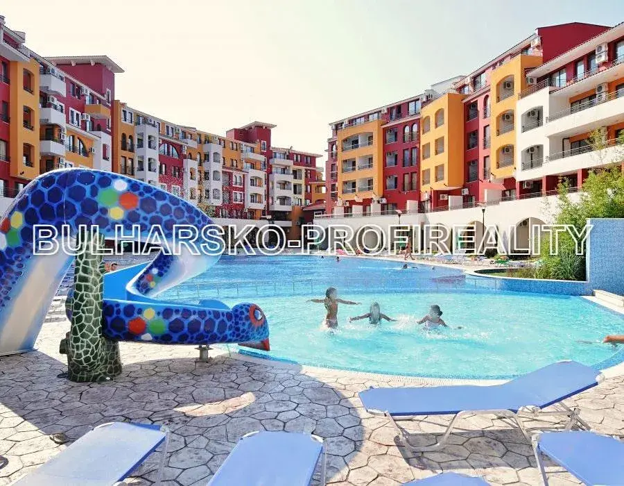 Apartmán je součástí velice udržovaného rekreačního komplexu hotelového stylu, který se nachází v lukrativní poloze PŘÍMO U MOŘE v klidné obci Aheloy.