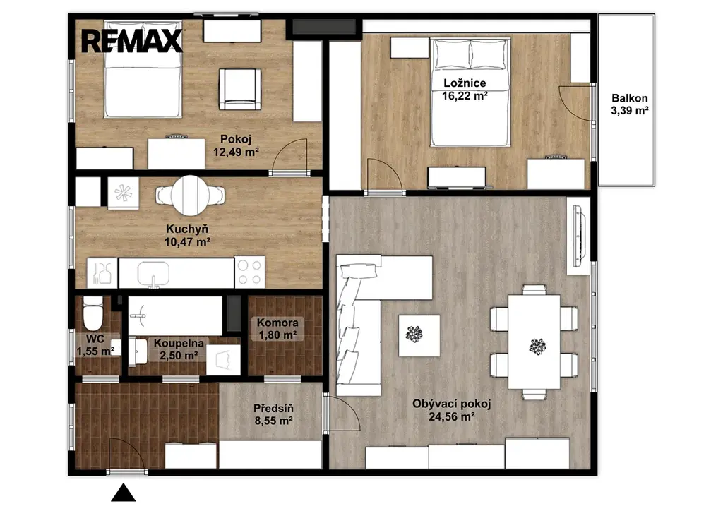 Byt o podlahové ploše 76,1 m² se nachází ve 3. patře (4. nadzemní podlaží) cihlového domu bez výtahu. V letech 2015 a 2018 prošel rozsáhlou rekonstrukcí, díky které nabízí moderní a komfortní bydlení bez nutnosti dalších investic. Praktickým bonusem je úložný prostor ve stropě v předsíni, vestavěné skříně a bezpečnostní vstupní dveře.
