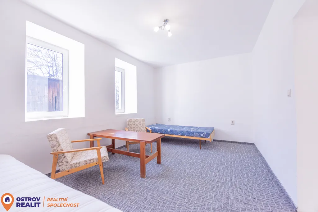 V obci Ruda nad Moravou nabízíme prodej části rodinného domu s vymezenými 2 bytovými jednotkami a zázemím kotelny dle prohlášení vlastníka z října 2009. Konkrétně v 1.NP se nachází nebytová jednotka již zmíněné kotelny s výměrou 28,10 m2 a byt v dispozici 2+1 s příslušenstvím s obytnou plochou 67,51 m2, ve 2.NP byt v dispozici 5+1 s příslušenstvím s obytnou plochou 86,38 m2 + balkonem a nad obytnou částí půdní prostor 102,93 m2 ve 3.NP. Dále předmětem prodeje je ve dvorním traktu domu v osobním vlastnictví samostatně stojící zděná garáž s pozemkem pod ní s plochou 20 m2. Pozemek jako zastavěná plocha a nádvoří pod domem a před ním je ve spoluvlastnictví s vlastníkem bytové jednotky 14/1, na něj navazující pozemky vedené jako zahrada jsou ve výlučném vlastnictví prodávajícího.
