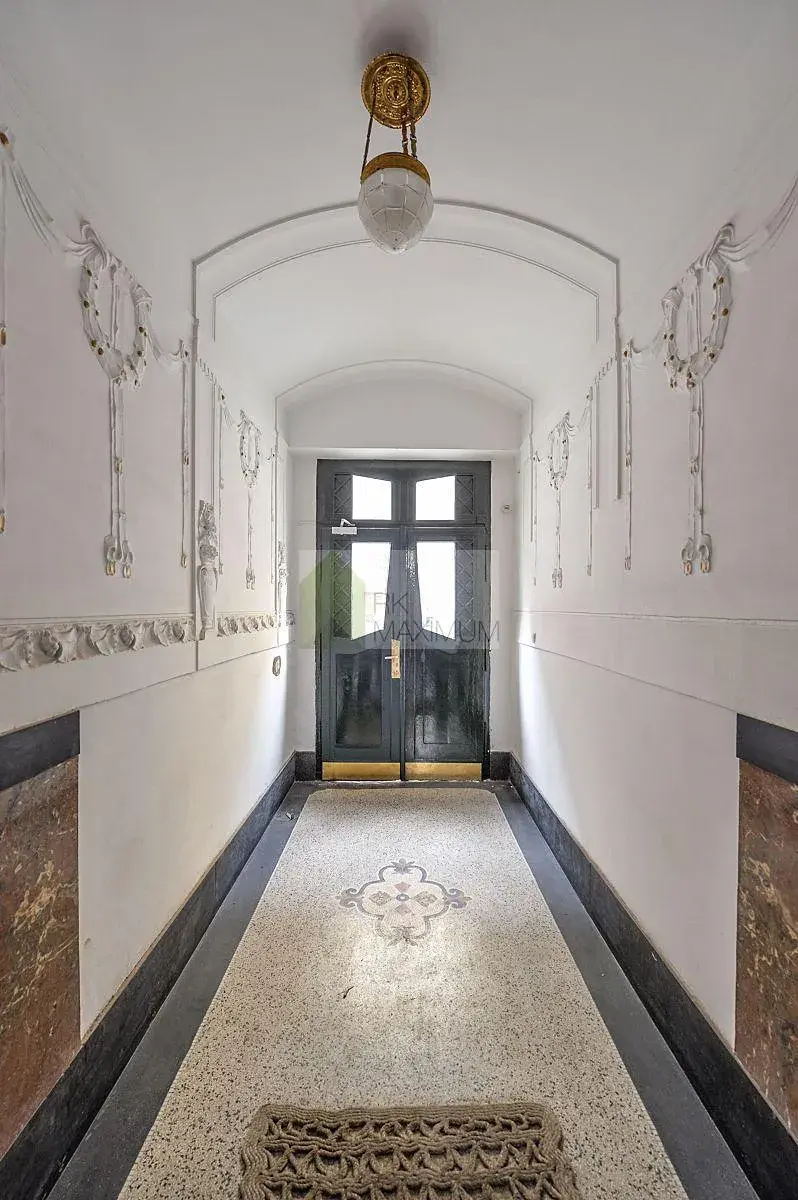 Byt se nachází v prvním patře cihlového domu a nabízí příjemné bydlení v zeleném prostředí. Kvalitní dřevěná podlaha v kombinaci s elegantní dlažbou Los Kachlos dodává interiéru nadčasový vzhled. Moderní kuchyňská linka značky Poggenpohl je vybavena veškerými spotřebiči pro pohodlné vaření.