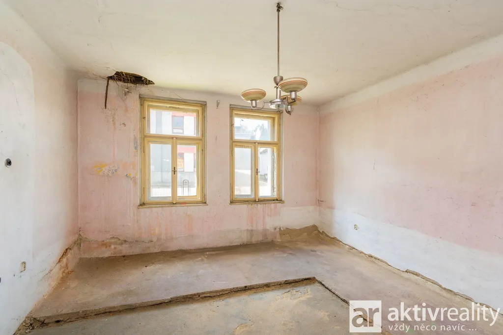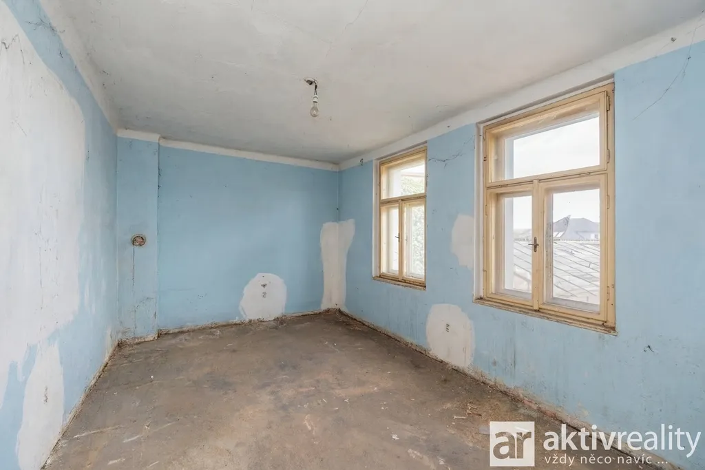 První část domu je aktuálně neobývaná a v původním stavu. V přízemí se nachází 3 obytné místnosti a koupelna, na které navazuje půdní prostor s jedním pokojem a další půdou. Druhá část domu, která byla částečně udržovaná a obývaná nabízí byt o dispozici 3+kk se vstupní halou a koupelnou s toaletou.