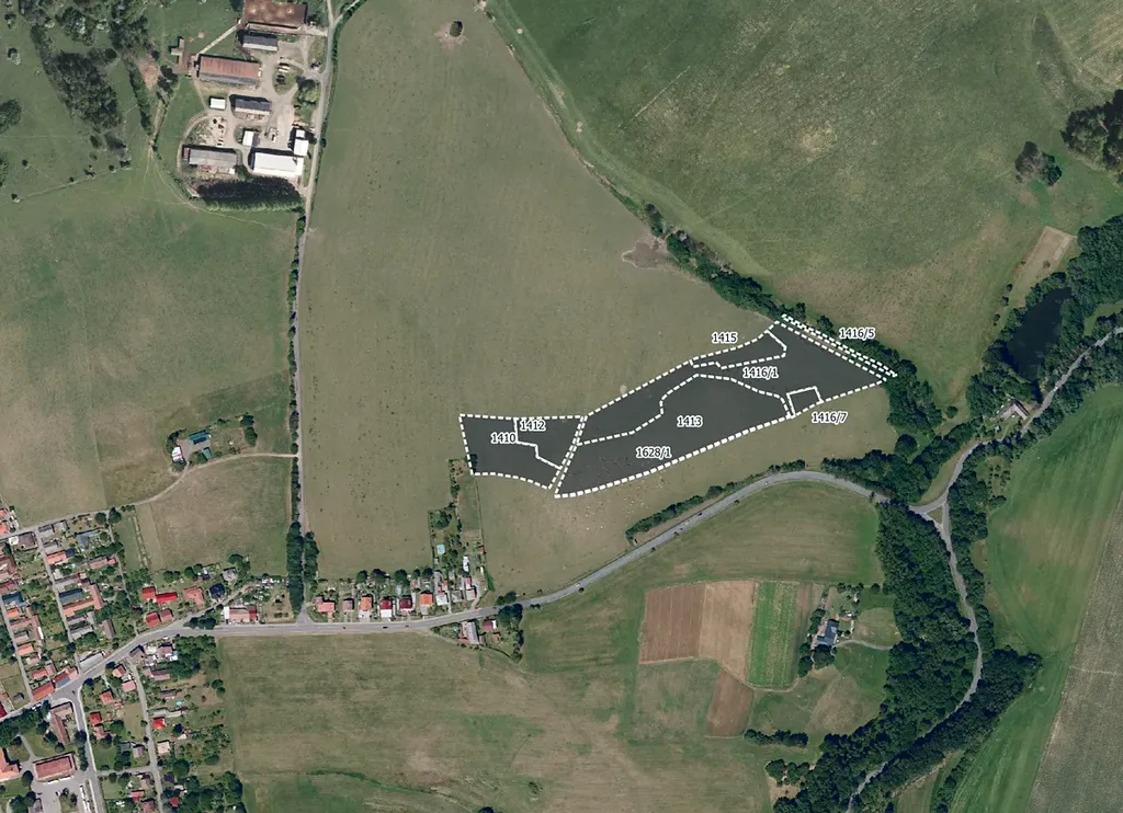 Předmětem prodeje jsou tyto parcely: 999, 1410, 1412, 1413, 1415, 1416/1, 1416/5, 1416/7 a 1628/1.
