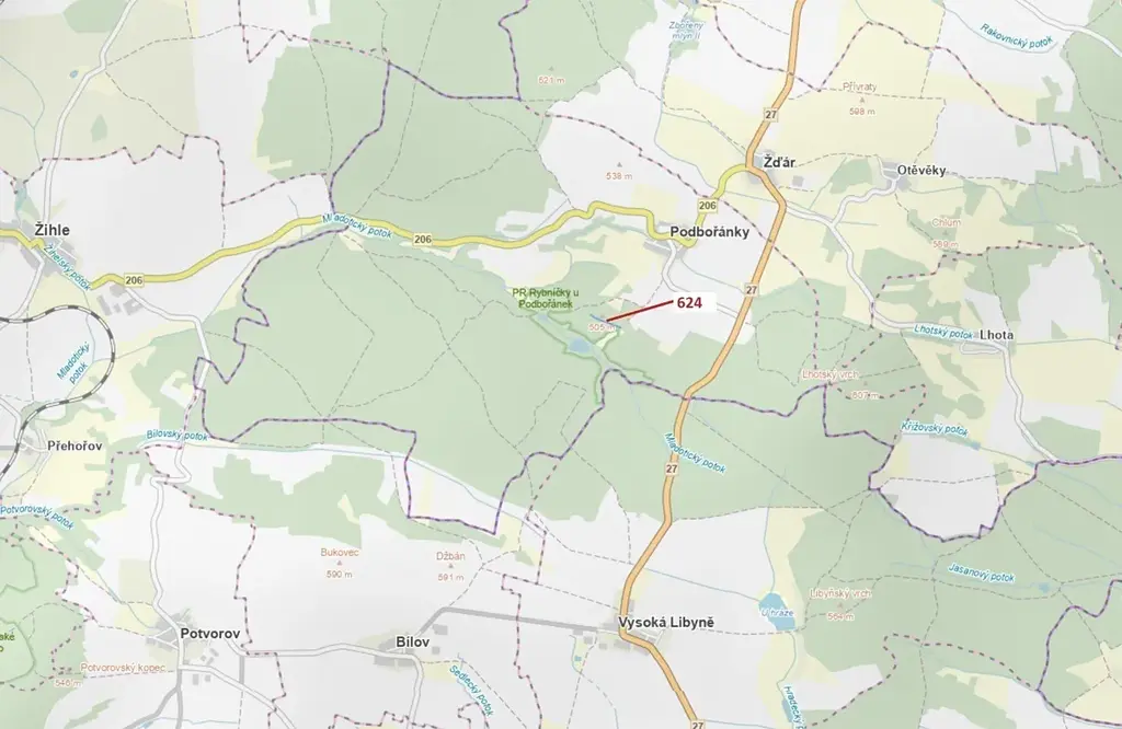 Lesní pozemek o výměře 2 895 m2, parcelní číslo 624, podíl 1/1, katastrální území Podbořánky, obec Jesenice, obec s rozšířenou působností Rakovník, okres Rakovník, Středočeský kraj.