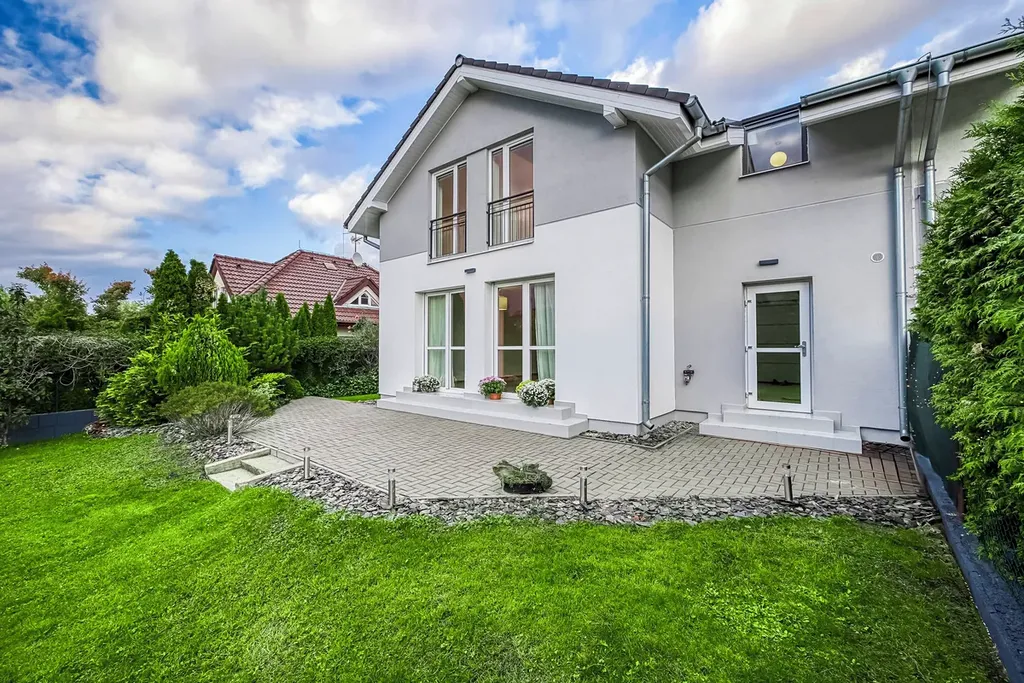 Home Real Estate Vám exkluzivně nabízí ke koupi prostorný a světlý rodinný dům v klidné rezidenční části obce Bašť, jen pár minut od hranice Prahy. Dům se nachází v řadové zástavbě jako pravá část dvojdomku a představuje ideální volbu pro rodinné bydlení s důrazem na pohodlí, klid a kvalitu.