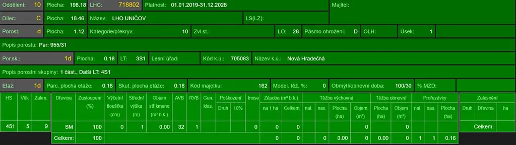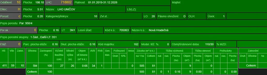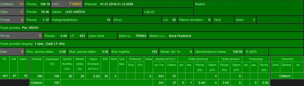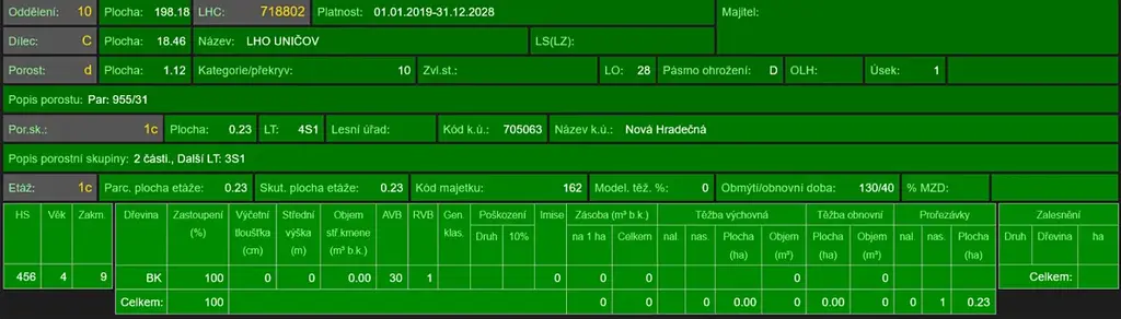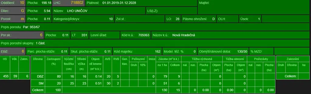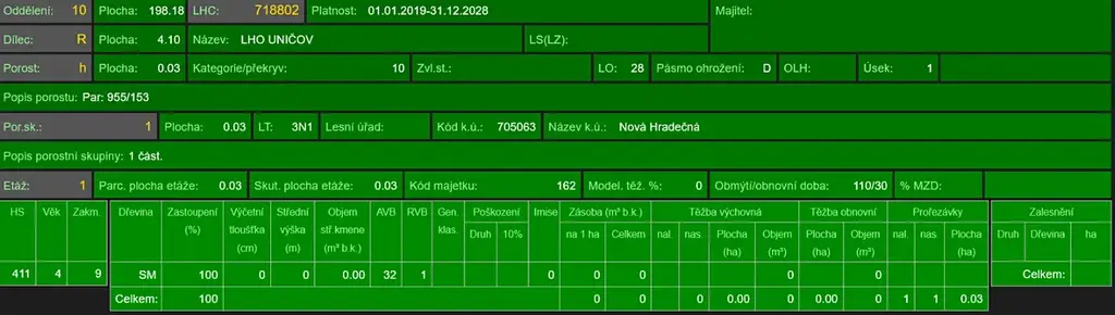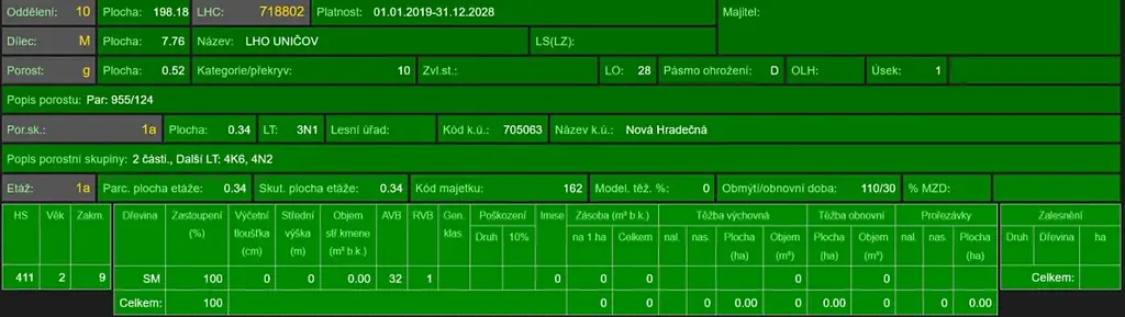 - p.č. 955/31 vedená jako lesní pozemek o celkové výměře 11 158 m2, z toho vlastníme podíl 1/8 tedy 1 395 m2 (stáří lesa 54, 40, 12 a 10 let - zastoupení dřevin smrk, stáří lesa 11 a 8 let - zastoupení dřevin buk),