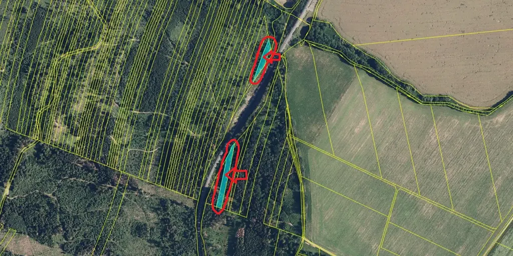 - p.č. 950/4 vedená jako lesní pozemek o celkové výměře 2 022 m2, z toho vlastníme podíl 1/8 tedy 253 m2 (stáří lesa 91 let - zastoupení dřevin olše, smrk, stáří lesa 66 let - zastoupení dřevin smrk),