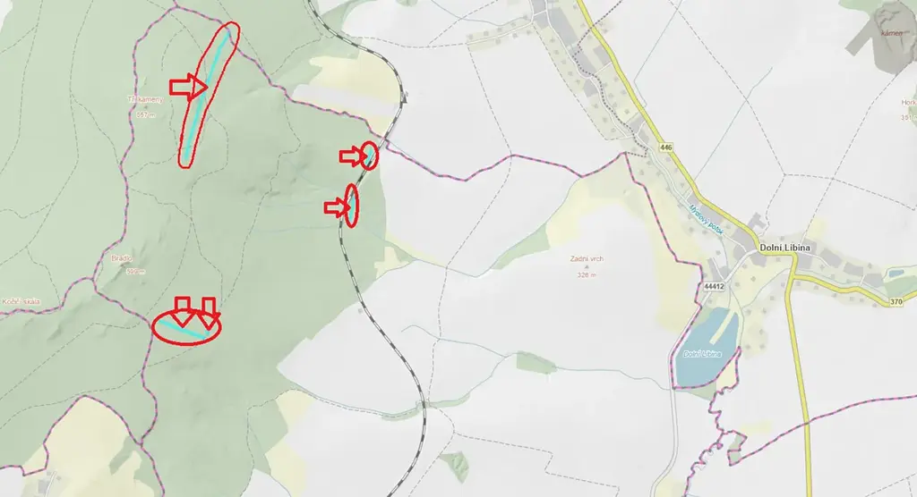 - p.č. 955/124 vedená jako lesní pozemek o celkové výměře 5 189 m2, z toho vlastníme podíl 1/8 tedy 649 m2 (stáří lesa 9 let - zastoupení dřevin smrk),