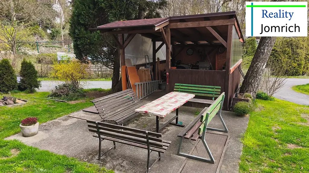 Byt se nachází ve zvýšeném podsklepeném přízemí menšího cihlového bytového domu, který má střechu po rekonstrukci s novou střešní krytinou i opravené komíny a je pečlivě udržován. V domě je do 2. podlaží instalovaná plošina pro manipulaci s invalidním vozíkem a patří k němu i pergola s grilem pro posezení rezidentů