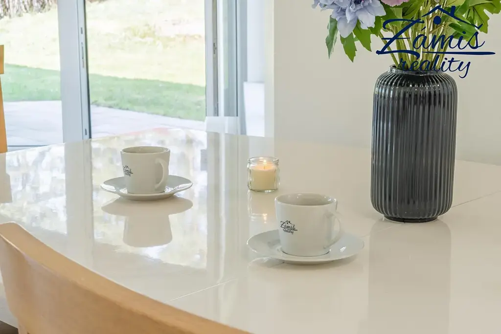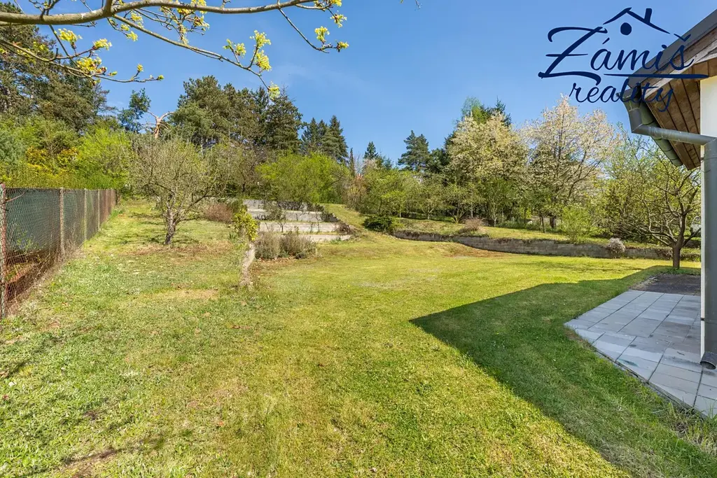Zahrada, zakomponovaná v mírném svahu, nabízí velmi příjemné soukromí a klid pro každodenní relax.