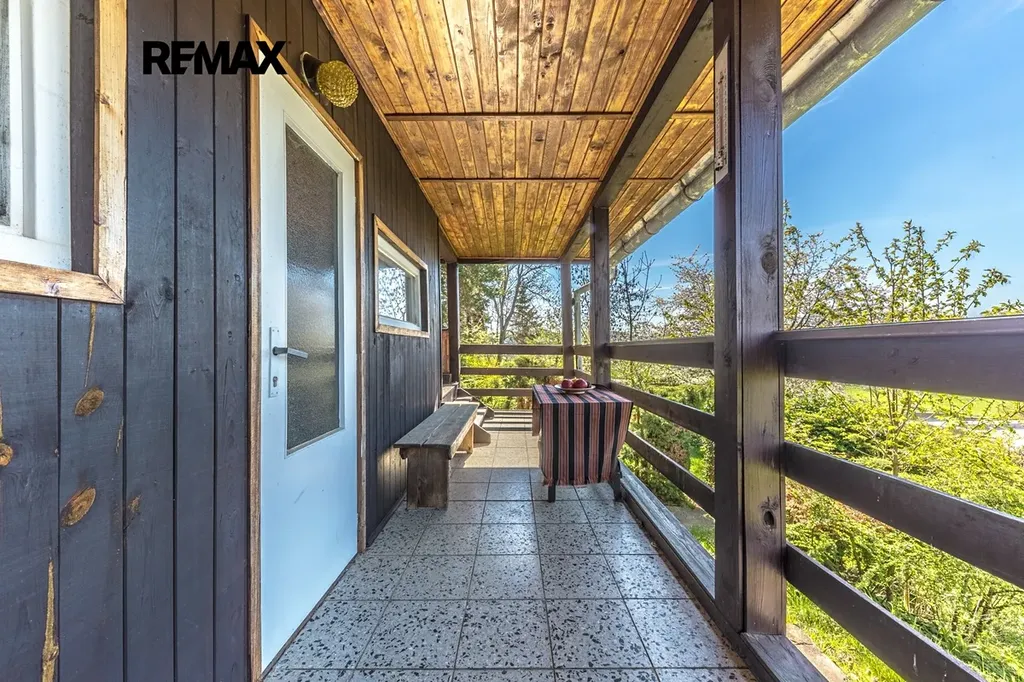 Objekt je patrový a nabízí užitnou plochu cca 36 m². V přízemí se nachází obytná místnost, samostatná kuchyňka se vstupem do koupelny se sprchou a WC. V podkroví je prostorná místnost na spaní až pro 4 osoby, ze které je vstup na balkon s krásným výhledem do okolní krajiny. Na pozemku je k dispozici pergola pro venkovní posezení a grilování. V zadní části zahrady se nachází zastřešená kůlna, vhodná pro uskladnění zahradního nářadí, kol nebo kutilské zázemí.