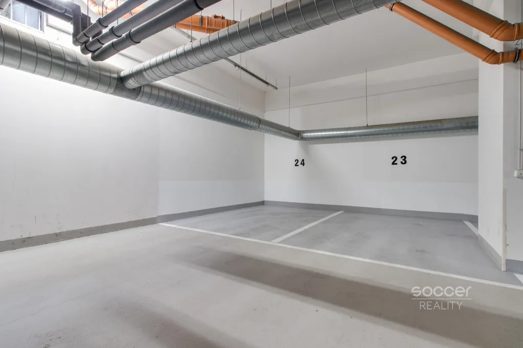 K bytu náleží balkon o velikosti 5,6 m2 a garážové stání, které je v suterénu domu.