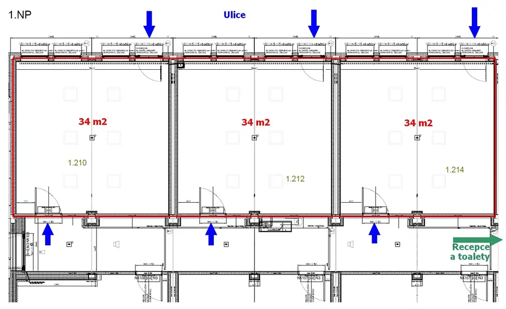 Nabízíme k pronájmu samostatné kanceláře o velikosti 34 m2 – nebytových prostor v přízemí novostavby moderního polyfunkčního modulárního objektu (hotelová a administrativní budova) WE HOTEL PRAGUE, ul. Beranových, Praha 9 – Letňany, v těsné blízkosti křižovatky ul. Beranových a ul. Tupolevova. Jedná se o 3x samostatných kanceláří/místností (3 x 34 m2) s příslušenstvím, v 1.NP, s možností dalších variabilních úprav, kdy je možnost pronájmu i společně tří sousedících kanceláří. Z důvodu umístění v přízemí nového hotelu WE HOTEL PRAGUE je možné tyto prostory využít jako obchodní prostory, kanceláře, využití pro poskytování služeb, nejen pro hotelové hosty (kadeřnictví, kosmetika apod.). Možnost umístění loga na fasádu budovy. Recepce non-stop. Přístup do prostor ze společných částí budovy a také přímo z ulice. Jedná se o plně nové prostory, doposud neužívané. Vlastní parkoviště. Velmi dobrá dopravní dostupnost do centra Prahy (u BUS zastávky Výstaviště Letňany a cca 350 m od stanice metra/BUS Letňany). Ihned k dispozici.
