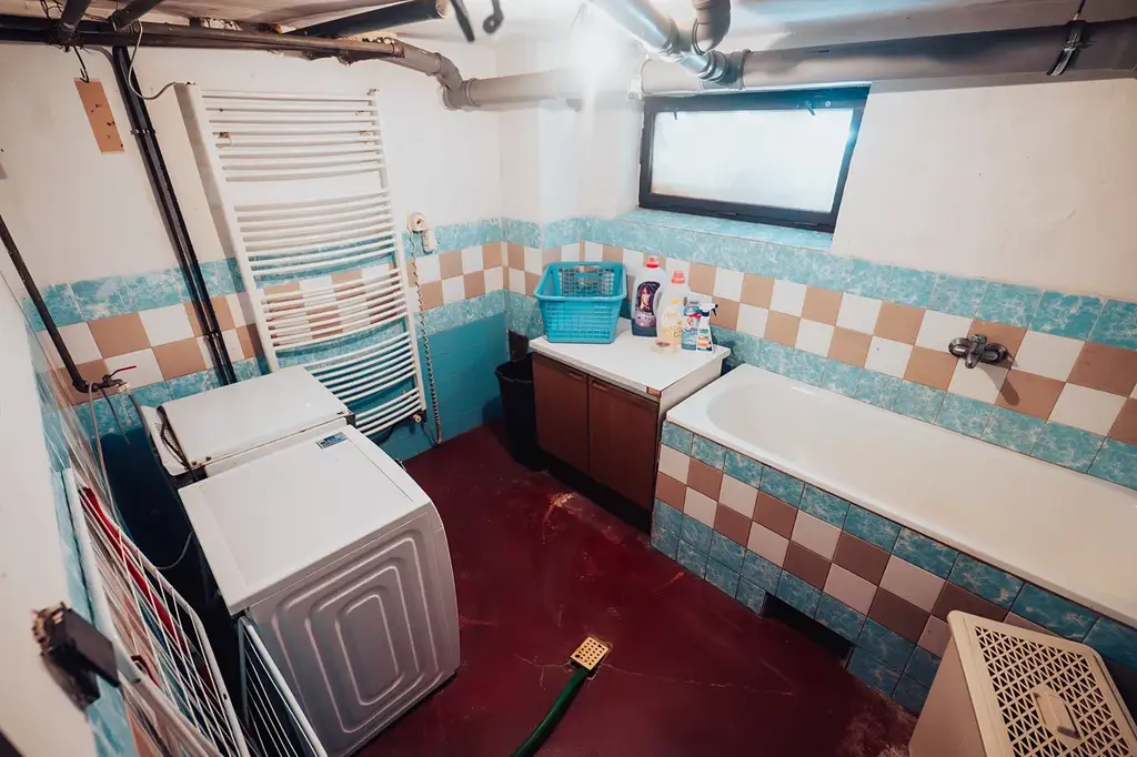 1.PP: Garáž s výstupem na zahradu a sklepní prostory