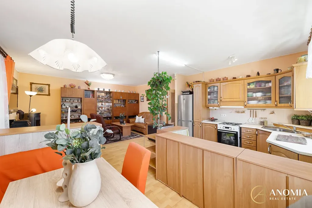 Hlavní obytný prostor má 36,15 m², a díky své velikosti nabízí dostatek místa pro kuchyni, jídelní stůl i pohodlnou obývací část. Vytápění domu zajišťuje plynový kotel.