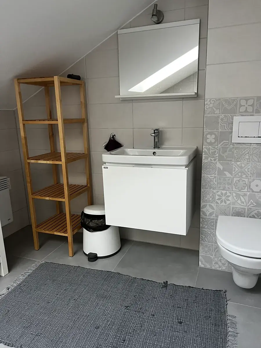 V přízemí se nachází obývací pokoj s kuchyňským koutem a vstupem na terasu, technická místnost, prostorná koupelna a dva pokoje. V prvním patře najdete koupelnu s WC a dva velmi prostorné pokoje z čehož jeden včetně rozlehlé walk-in šatny.