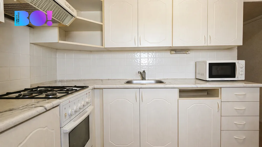 Vytápění i teplá voda jsou řešeny dálkově. Kuchyň je vybavena plynovým sporákem a elektrickou troubou.