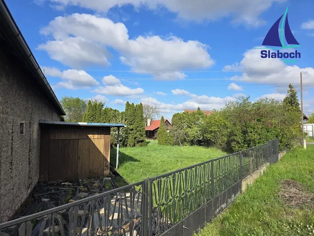 Stavební rovinatý pozemek s chatkou a garáží o ideální velikosti 733 m2, dle územního plánu lze vystavit rodinný dům na trvalé bydlení, na pozemku elektřina, studna a na hranici pozemku obecní kanalizace a vodovod.