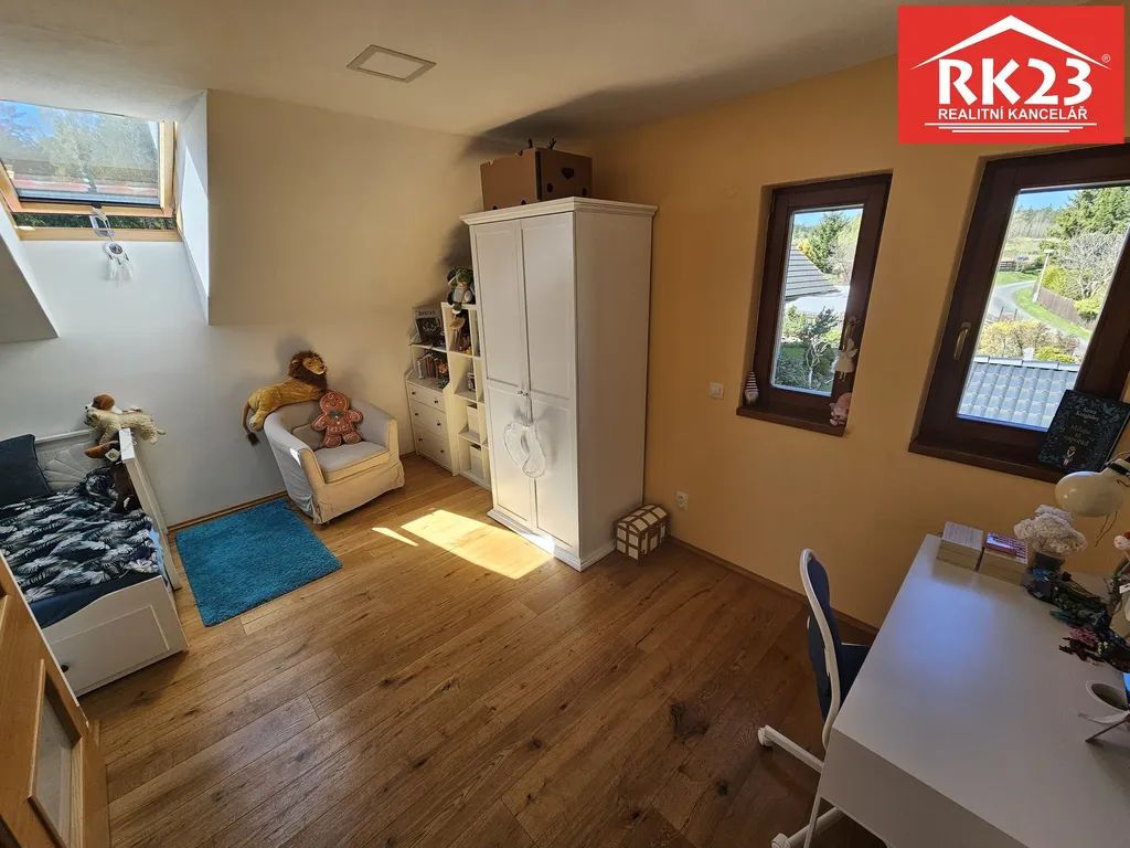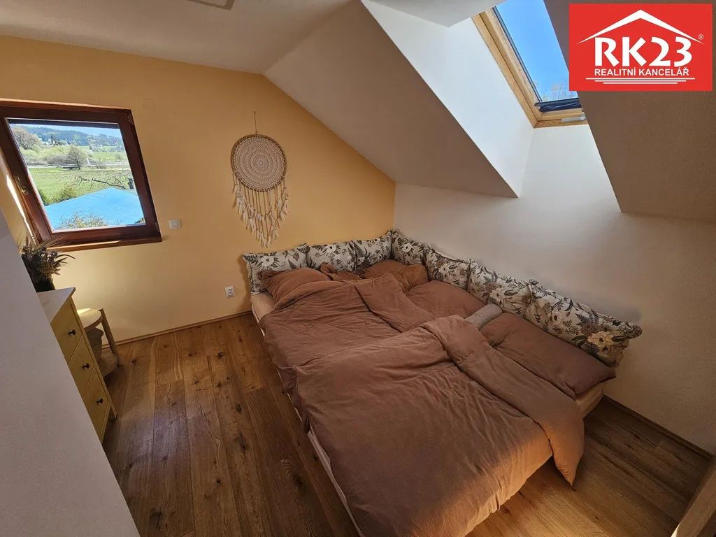 Dům je zkolaudován jako stavba pro rodinnou rekreaci a byl postaven a dokončen v roce 2019. Jedná se o typ dřevostavby, která je o dvou nadzemních podlaží, kde v přízemí domu se nachází prostorný obývací pokoj s kuchyňským koutem, koupelna se sprchovým koutem a toaletou, šatna a technická místnost. Z obývacího pokoje je možné přímo vstoupit na terasu, která směřuje na jižní světovou stranu. V prvním patře se nachází další 3 pokoje a prostorná koupelna. Okna mají venkovní elektrické žaluzie, v přízemí v obývacím pokoji je umístěn krb na tuhá paliva. Vytápění domu je řešeno elektrickým kotlem a ohřev vody bojlerem. Zahrada je o velikosti 791 m2 je mírně svažitá a nachází se na ní chata a plechová garáž. Dům disponuje vlastním vrtem na vodu a odpad vody je řešen jímkou. Dešťová voda je svedena do nádrže, která je umístěna v zemi. Pro více informací a nebo prohlídku kontaktujte makléře. S financováním rádi poradíme.