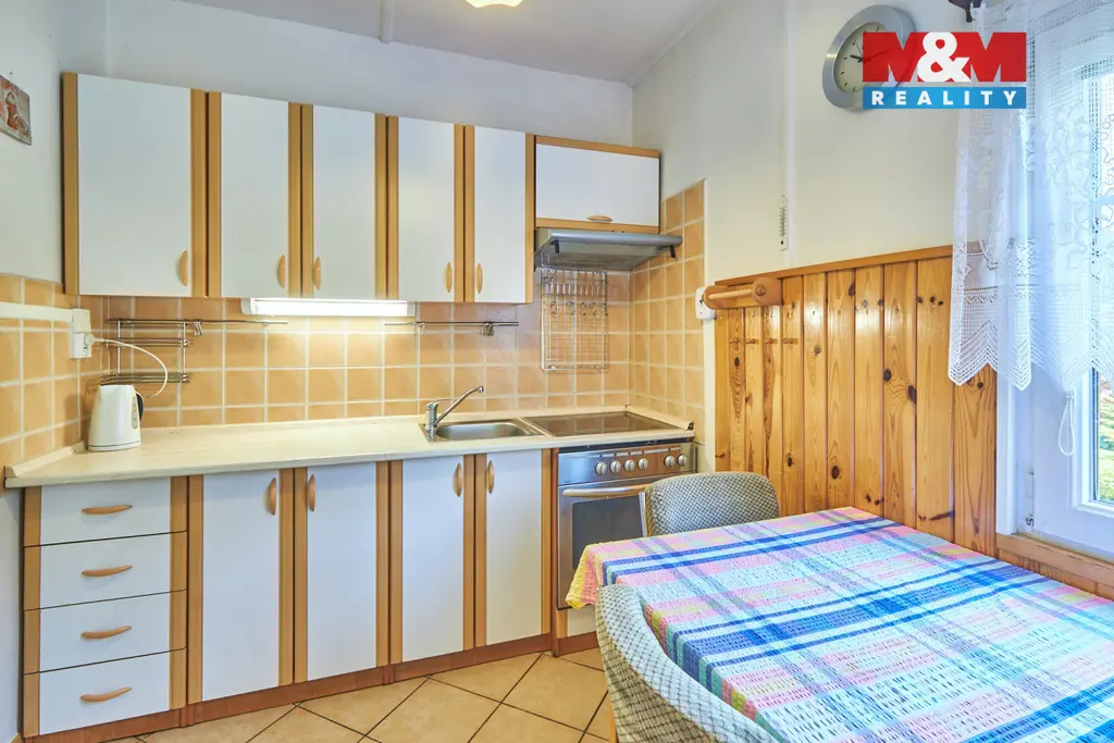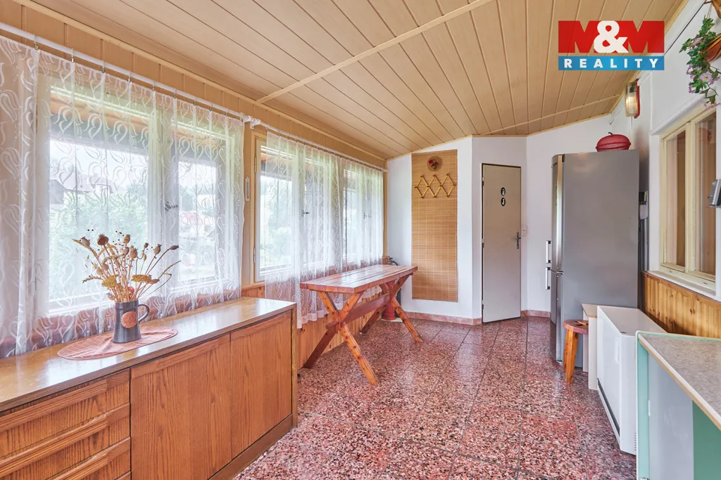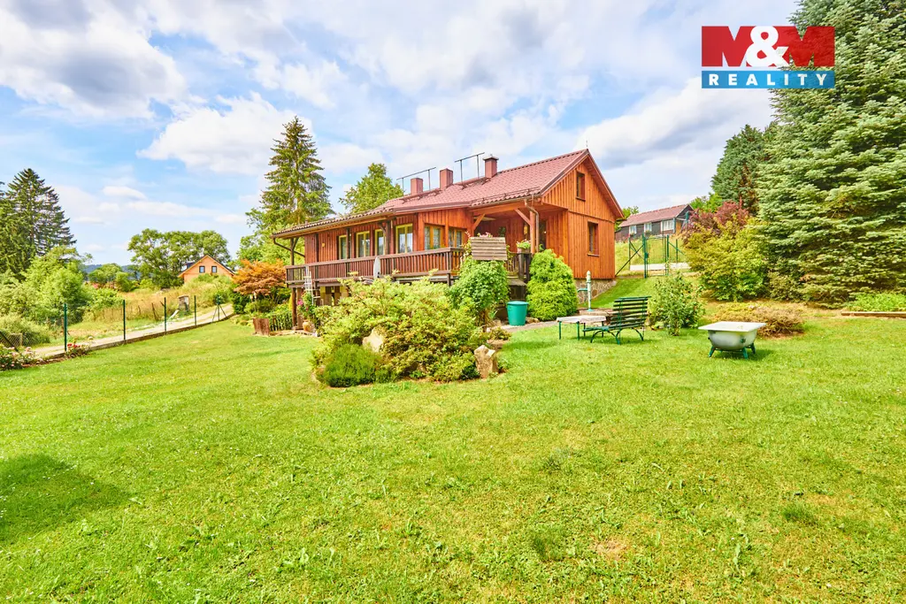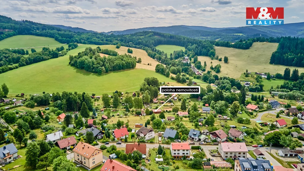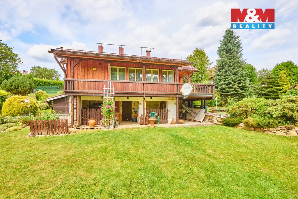 Nabízíme na prodej dům pro rodinné bydlení i rekreaci na okraji šumavského města Kašperské Hory o celkové výměře 1511 m² na rovinatém pozemku. Dispozice domu je 4+1 s prostornou verandou a velkým, částečně v podzemí umístěným prostorným sklepem. Zastavěná plocha domu je 95 m² plus terasa s výhledem do přírody a na lyžařskou sjezdovku. Dům byl postupně rekonstruován a přistavován dle potřeb majitele. Připojeno na elektřinu 220/380 V, obecní vodovod + vlastní studna. Dům má vlastní čističku odpadních vod. Jedno parkovací místo je pod domem a dvě parkovací místa jsou pod venkovní dřevěnou konstrukcí. Příjezdová cesta je zpevněná po obecním pozemku, který se v zimě udržuje pluhováním. Pozemek je prostorný a udržovaný. Dům má zánovní střechu, zateplení a je opláštěn dřevěnou konstrukcí. Celý pozemek je oplocen. Okolní prostředí nabízí spoustu využití, lyže, turistika, památky. Veškerá občanská vybavenost v blízkém okolí. Zajistíme vhodné financování. Více informací Vám rádi poskytneme v RK.