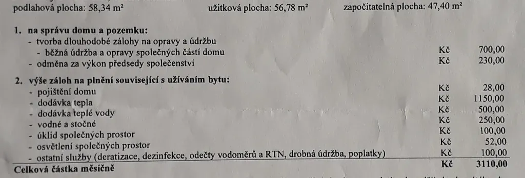 Informace k bytu