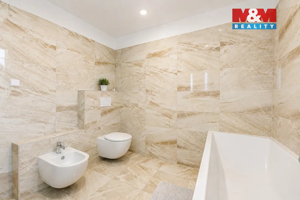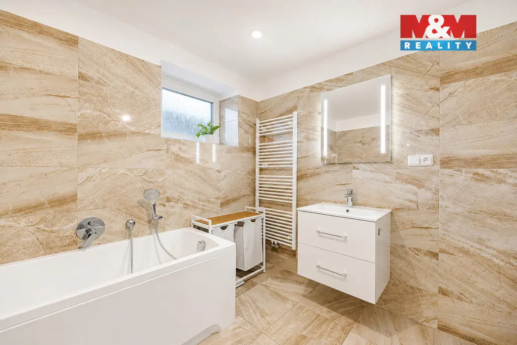 Součástí je také technická místnost a komfort bydlení zvyšuje podlahové vytápění v kombinaci s moderním tepelným čerpadlem, což zajišťuje nízké provozní náklady.