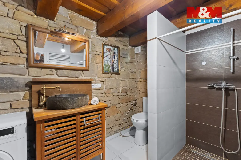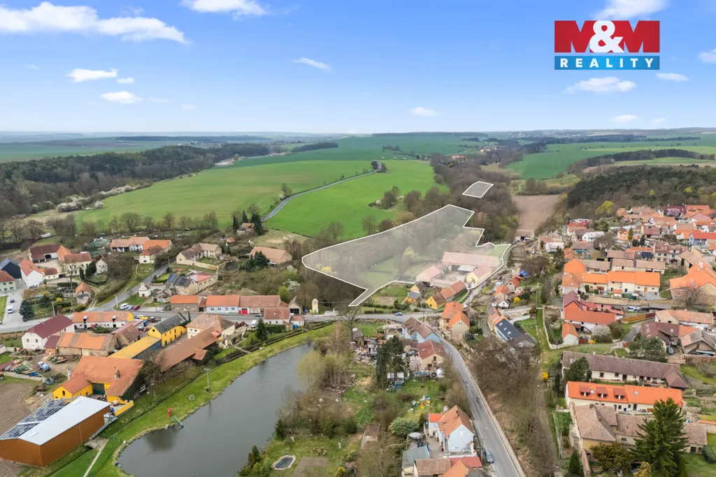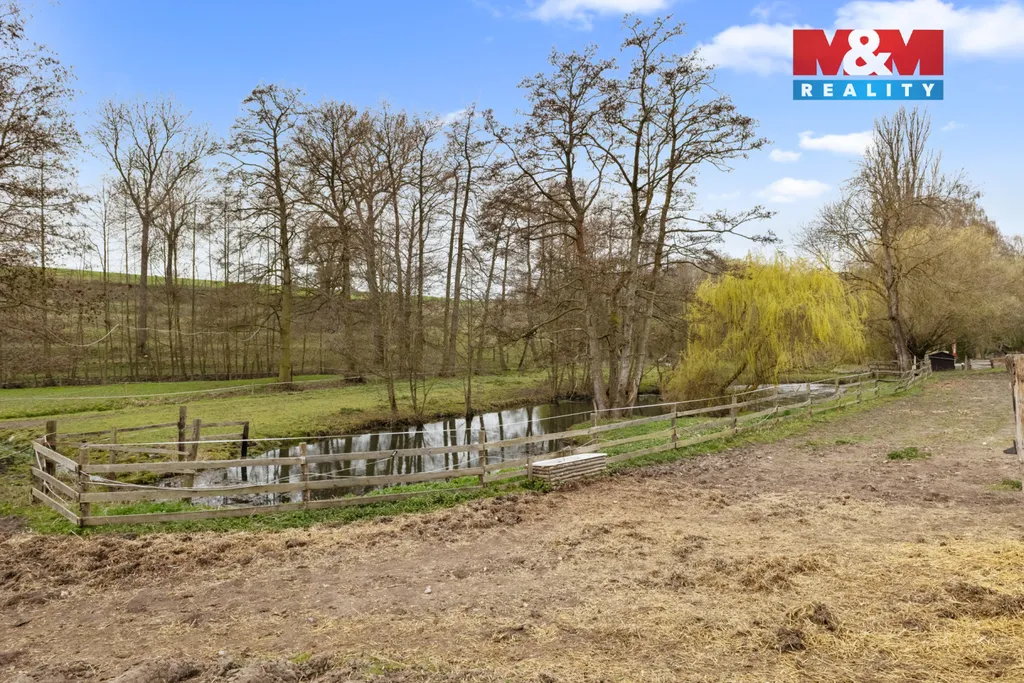 Celková plocha pozemků cca 18 700 m² (zahrady, pastviny, sad, les, stavební parcela, 2 rybníky, potok).