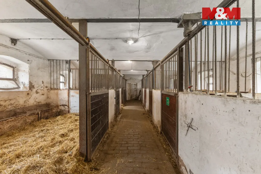 Areál (zast. plocha 1 851 m²) zahrnuje stáje (9 boxů), garáže, dílny, sklady a kompletní zázemí pro chov koní včetně jízdárny.