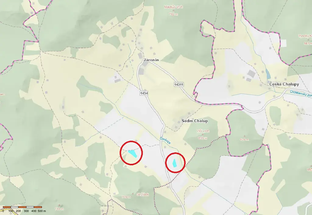 * parc. č. 981/9 leží nedaleko osady Sedm Chalup, v blízkosti vodního toku Olešnice,