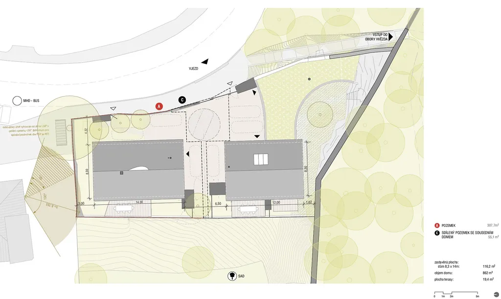 Dvě parcely na dva domy se stavebním povolením nacházející se v severozápadním cípu obory Hvězda.