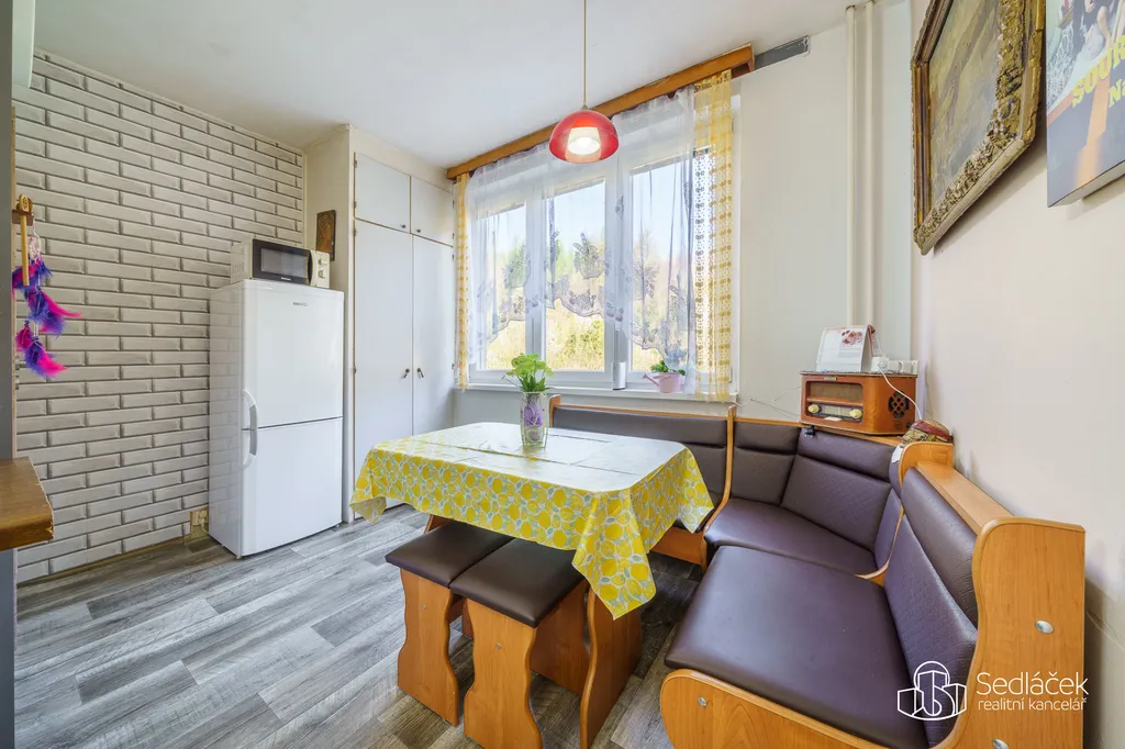Dispozice bytu je praktická a velmi dobře řešená. Kuchyně je samostatná s dostatkem prostoru pro kuchyňskou linku i jídelní stůl. Obývací pokoj se vstupem na lodžii, samostatná ložnice. Vstupní chodba nabízí dostatek místa pro vestavěné skříně. Koupelna je vybavena sprchovým koutem, toaleta je samostatná. K bytu náleží také sklepní kóje.