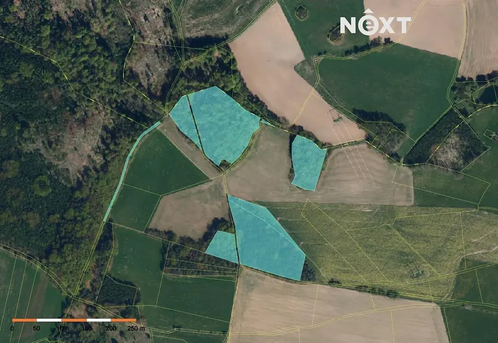 • Parcela č. 250 - o výměře 2697 m² (Lesní pozemek)