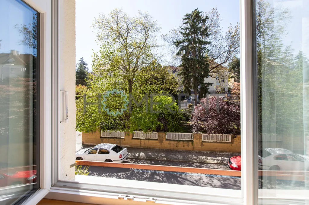 Byt má příjemný výhled do ulice a díky své orientaci nabízí dostatek denního světla, což interiéru dodává vzdušný a příjemný charakter.