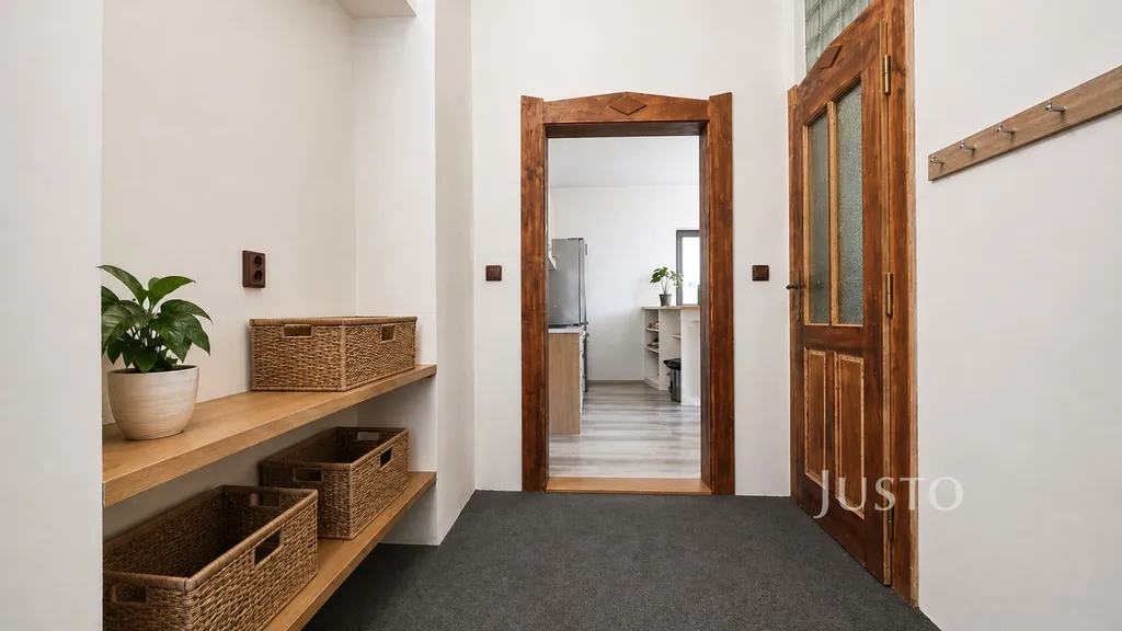 Byt má prostornou vstupní chodbou, ze které je přístupná samostatná toaleta. Chodba nabízí dostatek prostoru pro uložení bot, kabátů i dalšího vybavení.
