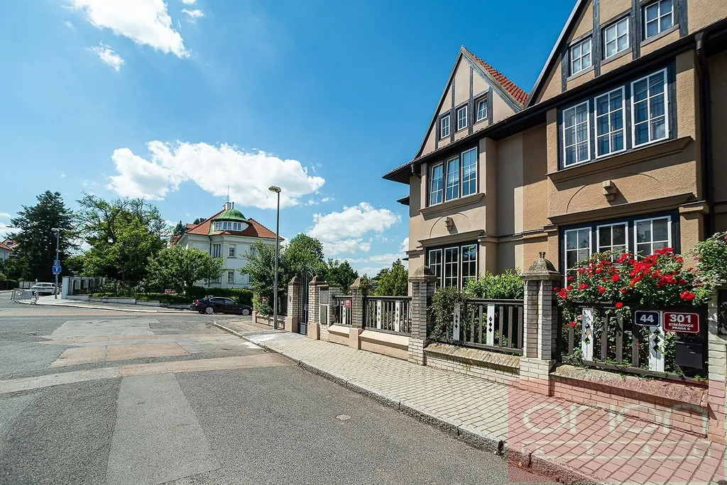 Nabízíme k pronájmu kompletně zrekonstruovaný rohový řadový dům 5+1 s terasou a udržovanou zahradou v prestižní vilové čtvrti Ořechovka, Praha 6.