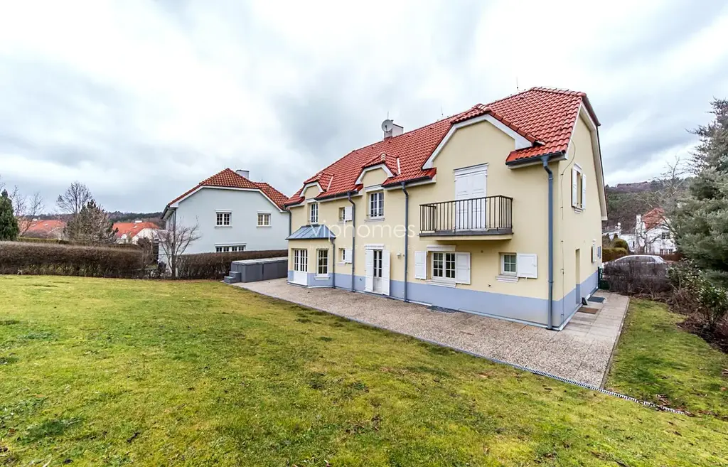 Na podlahách plovoucí podlahy, dlažba, koupelny v nadstandardním provedení. Zahrada se vzrostlými stromy o výměře cca 500 m2 skýtá soukromí. Objekt je napojen na bezpečnostní službu 24/7 a celý areál Malá Šárka je monitorován.